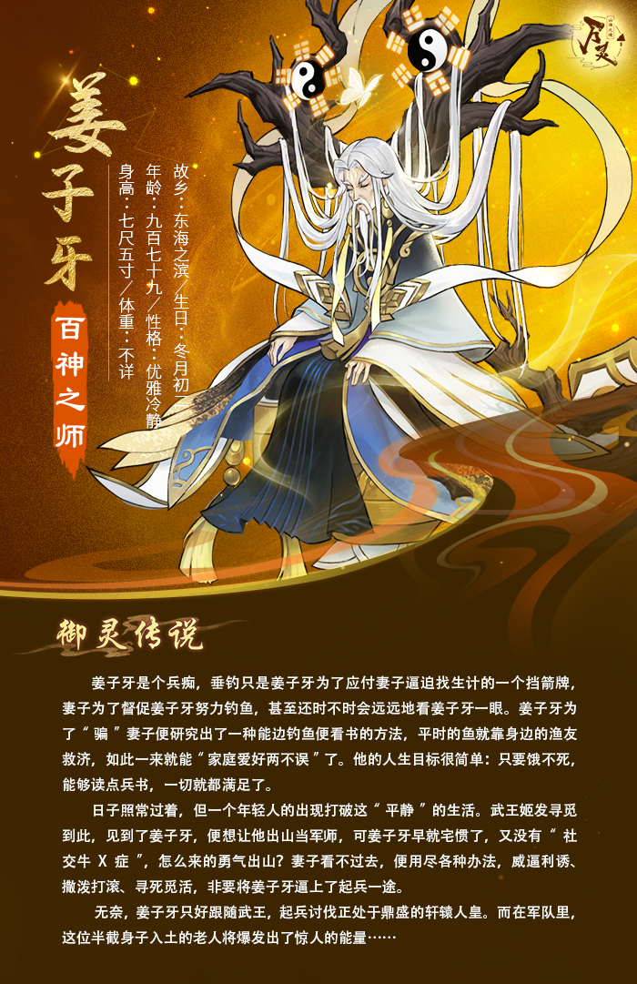 对于某些人来说,功成名就,仅仅只是一种选择而已,这些人,是连老天都要妒忌的不世奇才。本期的御灵绘录一起来了解这位不世之才——姜子牙。