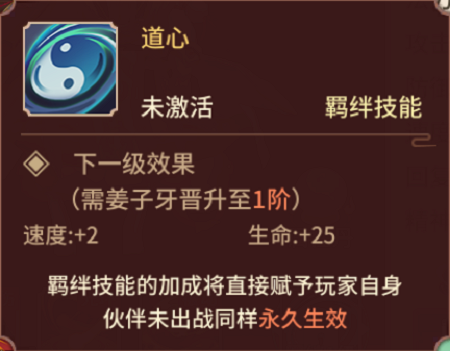 羁绊·道心:能够给玩家提供速度和生命值的加成。